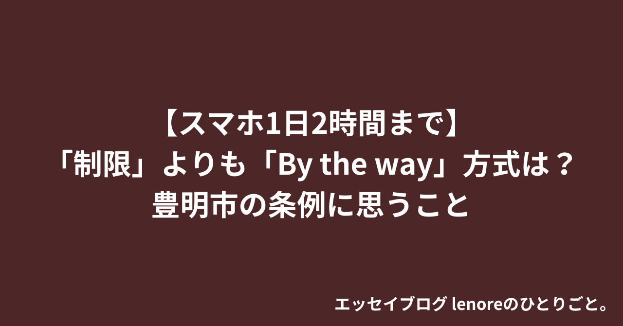 【スマホ1日2時間まで】「制限」よりも「By the way」方式は?豊明市の条例に思うこと
